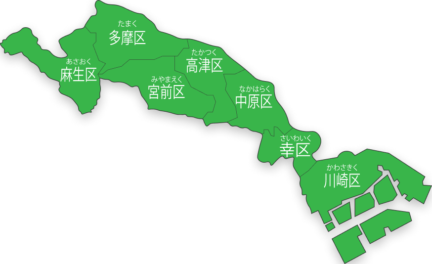川崎市は日本の最先端を行く首都東京と、古くより港町として栄え異国情緒溢れる横浜に挟まれ、「工場萌え」の舞台となった扇島周辺のハイテク工業都市と多摩丘陵から連なる起伏ある町並みと第一級河川 多摩川の恩恵を得て発展してきた人口100万人を超える政令指定都市です。 近年では再開発が進みファミリー向けの商業施設が連立し、音楽などの芸術に関するイベントも多く開かれています。ファンサービスJリーグナンバーワンとの呼び声が高い川崎フロンターレの本拠地をはじめ、様々なチームが川崎をホームタウンとして活躍し、国際的なスポーツ大会も数多く開催されています。
