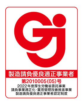 優良で適正な事業を展開し、その体制が整っている請負事業者=製造請負優良適正事業者として当社は「GJマーク」の認定を受けています。また、数多くの個人情報を適正に扱う「プライバシーマーク」の認定も受けており、東海事業所、金沢事業所、大阪事業所では品質マネジメントシステムの国際規格である「ISO9001」認証も受けています。