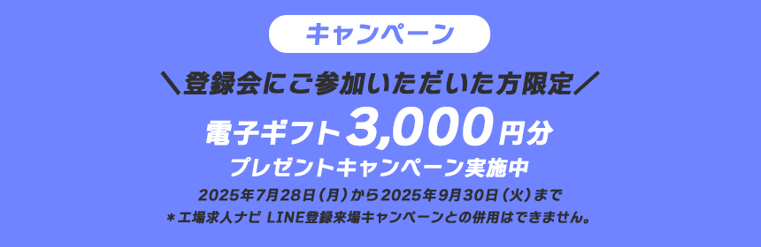 | 年齢・資格 | 18歳以上、学歴不問、工場ワーク未経験者歓迎 |