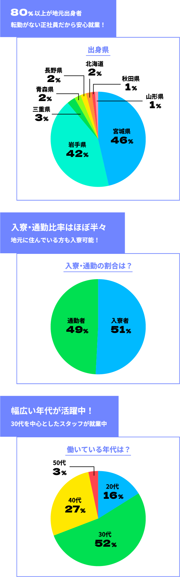 20代~40代の男女が活躍しております。未経験からスタートした方も大勢いますので、