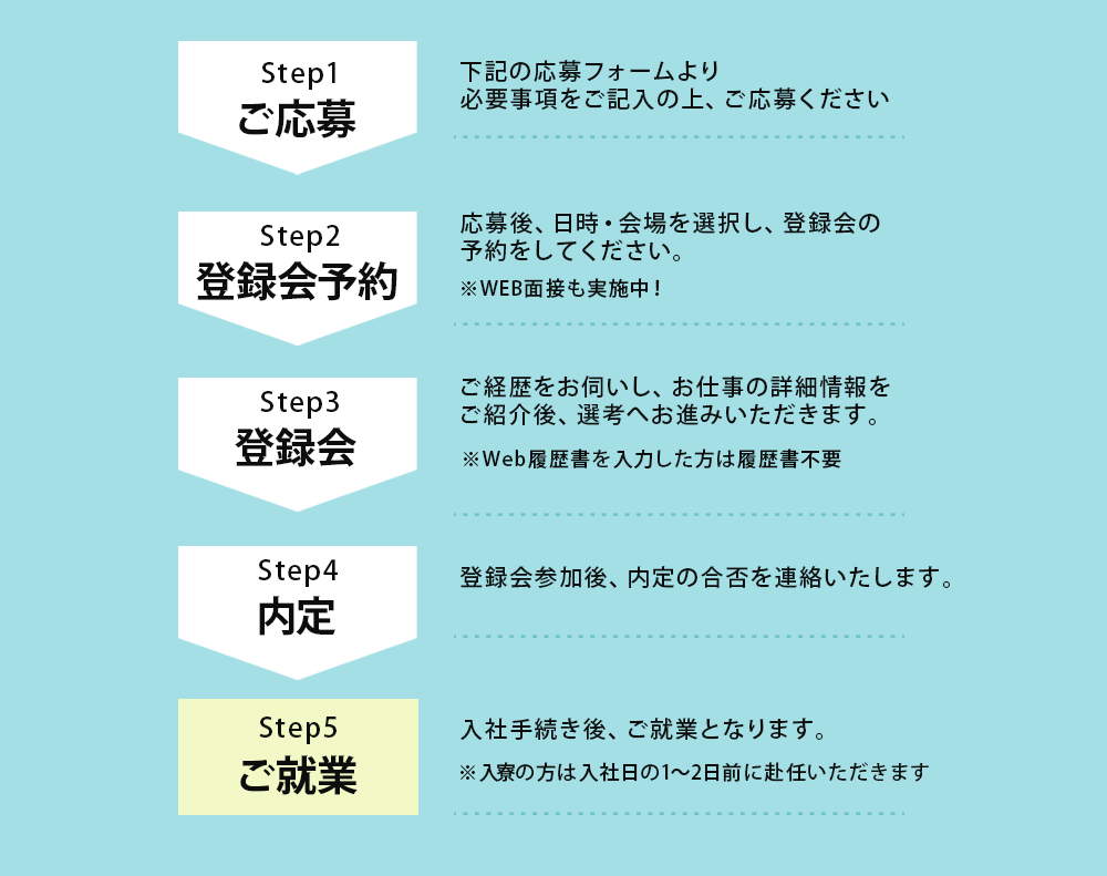 既に一度登録会に参加したことのある方や、当社で勤務中の方は、各オフィスや営業所の担当者から
