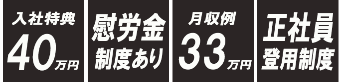 | 入社特典 | 40万円支給 |