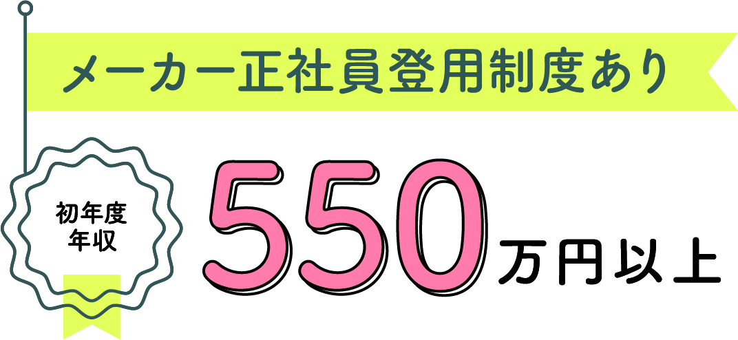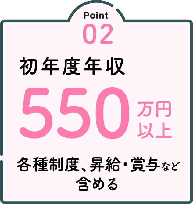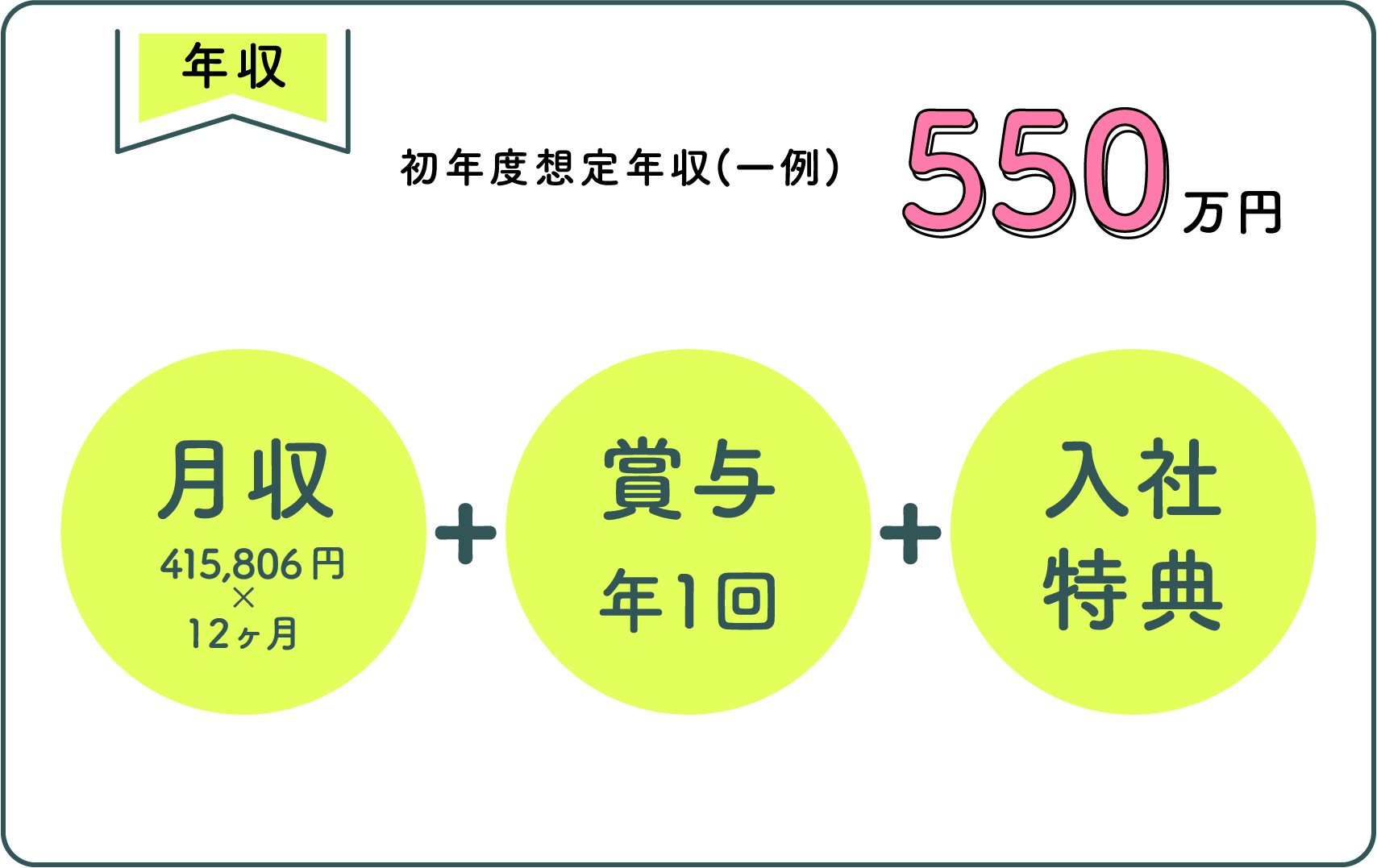 初年度年収550万円以上も可能(月収+賞与/1回+特典)です。 2025年4月からの月給です。3月までは月給29万円となります |