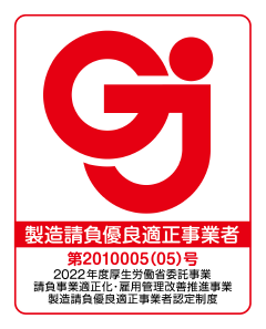 優良で適正な事業を展開し、その体制が整っている請負事業者=製造請負優良適正事業者には、認定証明と認定マーク(GJマーク)が付与されます。日総工産はこのGJマークを取得しています。