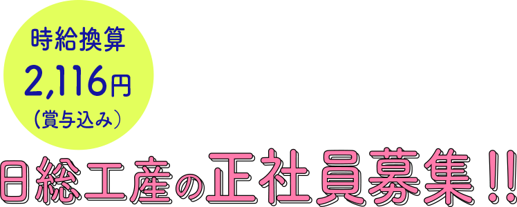・週休2日制(土日) ・年末年始休暇 ・GW ・夏季休暇 ・有給休暇 工場内カレンダーに準じます。 |