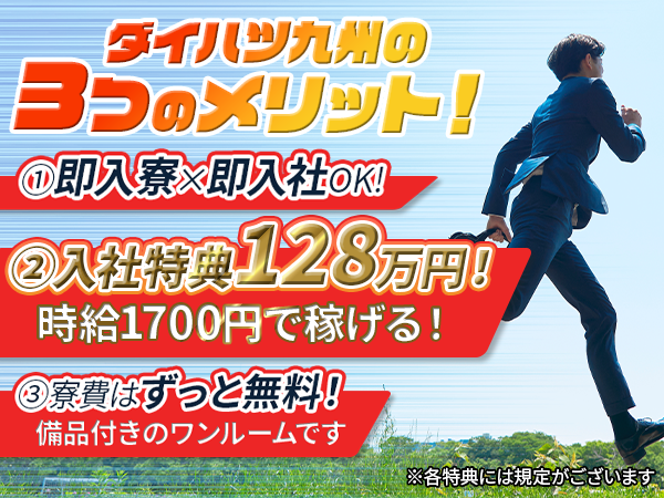 <<超朗報>>【特典総額最大128万円】即入寮×即入社可!寮費無料!