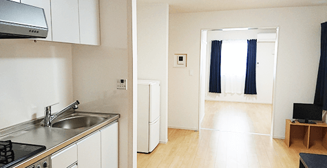 寮の室内は広く、キッチンもあるので、自炊もOK!