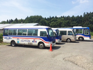 送迎バスは北上市内の社員寮と工場を結ぶ