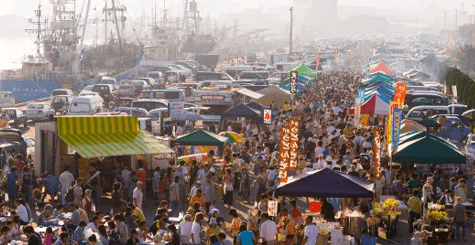 館鼻岸壁朝市(たてはながんぺきあさいち)は八戸の巨大朝市です