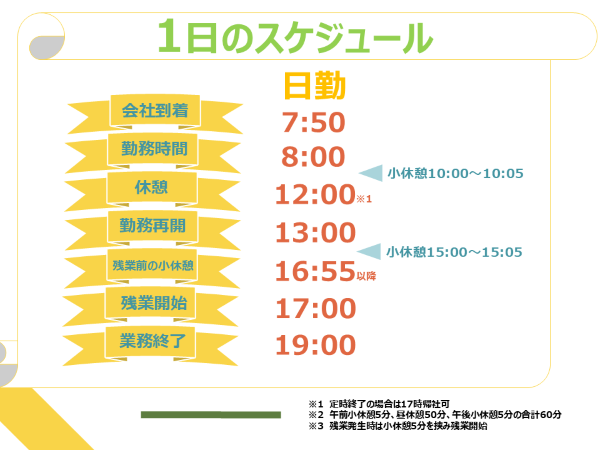 - 日勤固定×土日休み×年間休日121日
