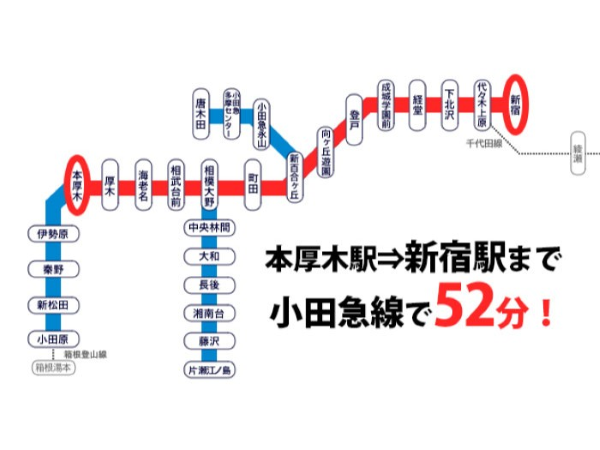 平日は厚木でお仕事頑張り、休みの日に都会へお出かけしやすい環境あります◎