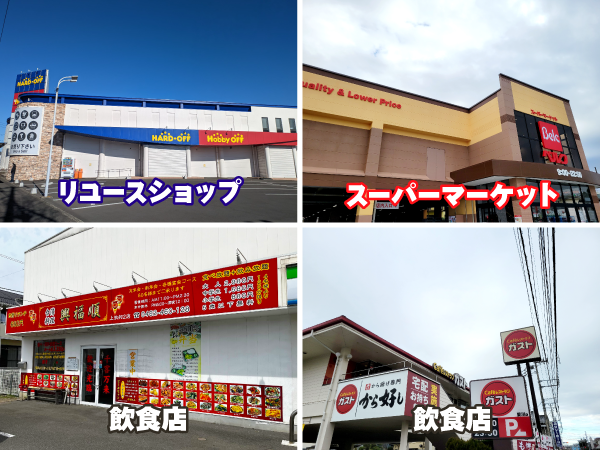 工場周りにはスーパーや飲食店も多く、