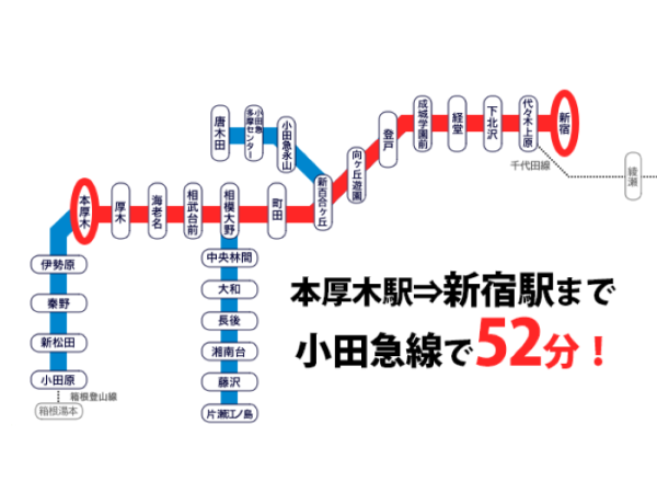 最寄本厚木駅から新宿まで52分!