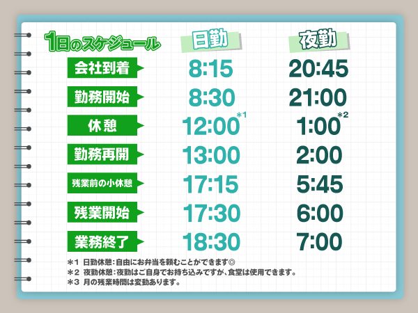 - 勤務地により内容が異なる場合があります。面接時にご確認下さい。