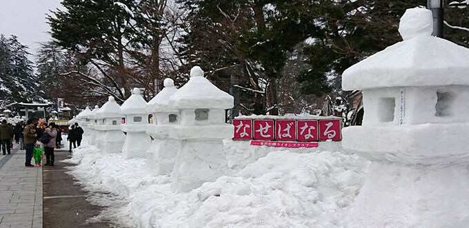 上杉神社で毎年行われる雪灯篭祭りです。