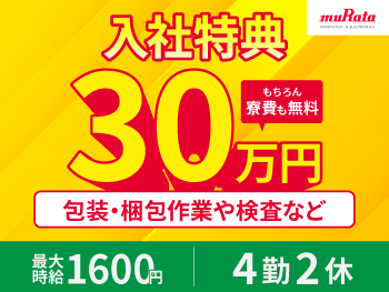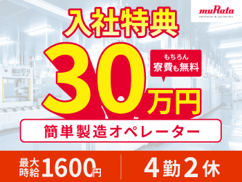 新年1月入社:特典30万円! 増員中の『出雲村田製作所』内でのお仕事!
