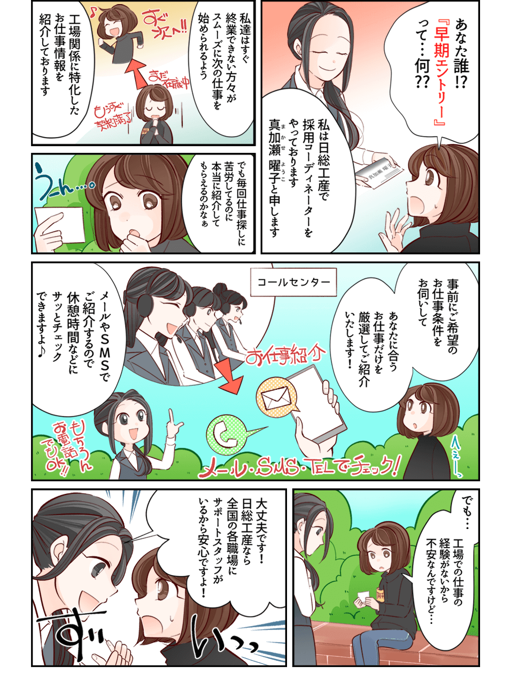 当社よりメールやSMS、電話などでオススメのお仕事をご紹介いたします。
