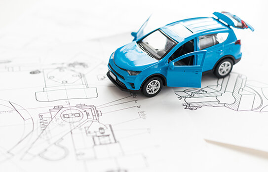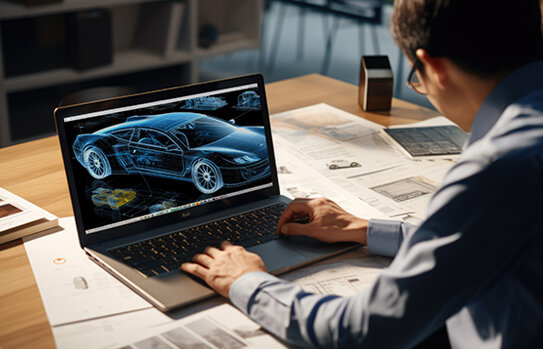 自動車の設計・開発の仕事は、基本的に自動車メーカーのエンジニア(社員)が担当しており、コンセプトに基づいて新車の基礎設計を行い、開発やテストの指揮にも当たります。開発・設計担当者の業務分野は、自動車の内部構造や外版、エンジン、駆動系など多岐にわたり、構想設計→基本設計→詳細設計の順で設計図を作成していきます。
