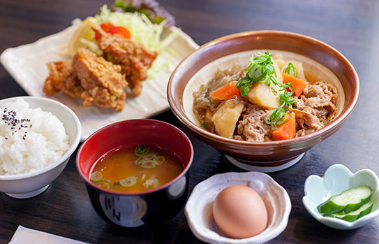 国民食ともいわれるカレーライスは、どこの食堂でも人気の高い定番メニューです。肉や野菜が入って栄養的にも優れ、手軽に食べられてお腹もしっかり満たされます。