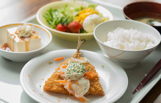 天ぷら・フライの盛り合わせや、鳥の唐揚げ、とんかつなどの揚げ物は、高カロリーでエネルギーの補給にも好適。ご飯・味噌汁と合わせれば、しっかり食事をしたという満足感もアップします。