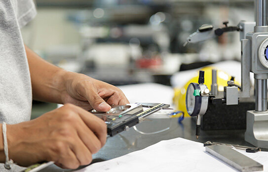 ●測定機器を使用して製品の長さ、幅、厚みなどの寸法を精密に計測する(寸法測定)