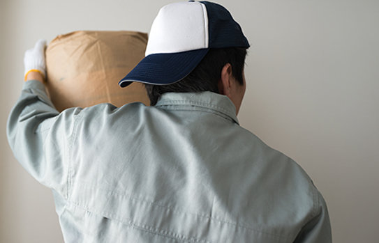 梱包した製品の配送先を振り分ける作業。梱包作業やトラックへの積み込みとセットで行われることが多く、正確さとスピードが求められます。