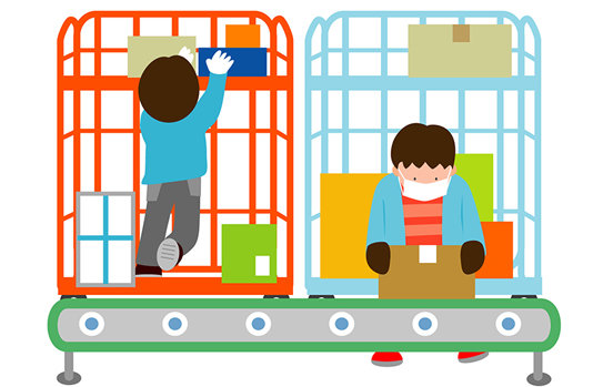 ライン作業の主な種類としては、行程ごとに「組み立て」「加工」「機械オペレーション」「検品」「梱包」「仕分け」などの作業があります。