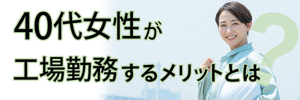 最近では40代の女性の方でも工場勤務する方も多く、積極的に仕事に取り組む姿が印象的です。では40代女性が工場勤務するメリットにはどのような点が挙げられるのでしょうか。