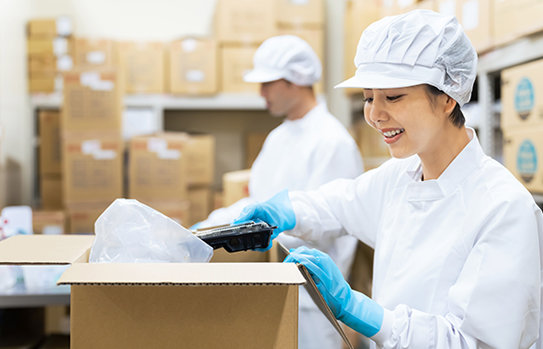 完成した商品を梱包し、出荷する作業です。具体的な作業内容は工場によって異なり、食品を計量して袋詰めしたり、パックした商品を個数ごとに箱詰めしたりします。また、出荷作業はフォークリフトで行われることも多く、フォークリフトの資格を持っていると重宝されます。