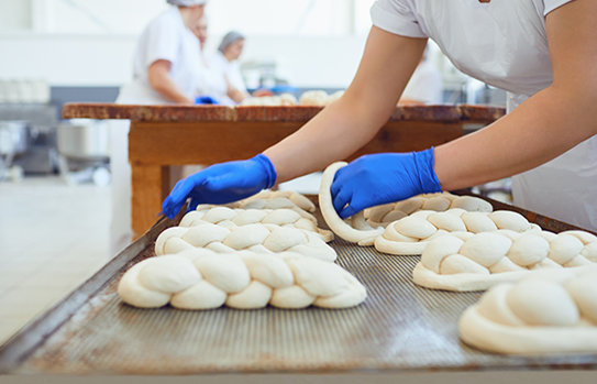 製造工程のほとんどが機械化されているため、現場の作業ではベルトコンベアーで流れてきたパン生地にバターを塗ったり、具材をトッピングしたりする加工・盛り付けの行程がメインとなります。