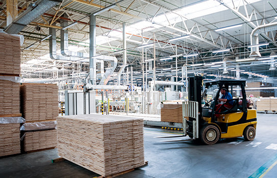 完成した製品を工場内から運び出す際やトラックに積み込む際に、フォークリフトを使って出荷作業の効率化を図ります。