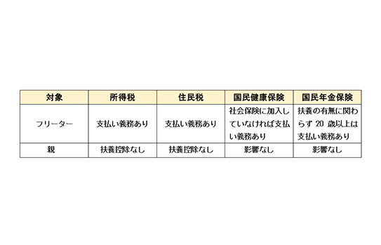 フリーターが親の扶養から外れると、税金や保険料の支払い義務が生じます。また、扶養する親にも扶養控除が適用されないため、納める税金の額が増えることになります。