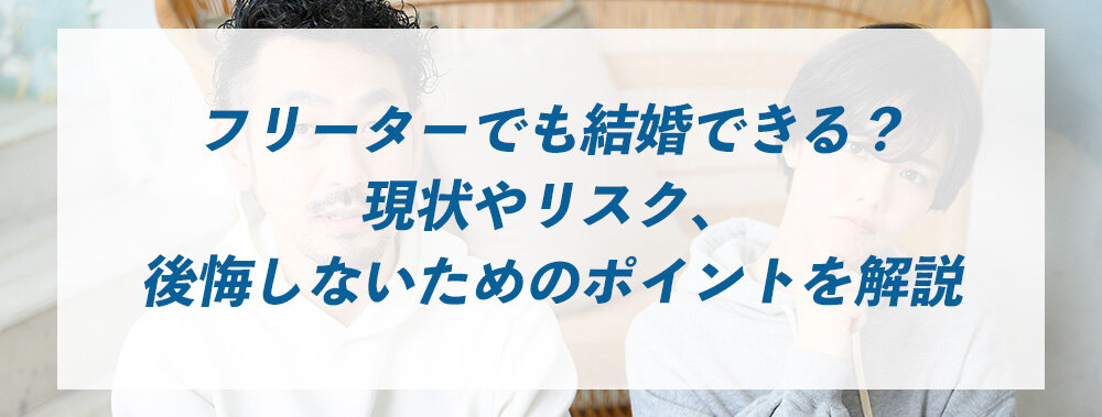 フリーターを続けていると「自分は結婚できるのだろうか」「フリーターのまま結婚しても大丈夫だろうか」と不安になる人も多いのではないでしょうか。もちろん「結婚するかどうか」は、本人同士の価値観や考え方によるため、お互いに納得して合意すればフリーターでも結婚することは可能でしょう。