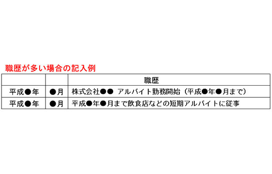 ・アルバイトの職歴が多くて書ききれない