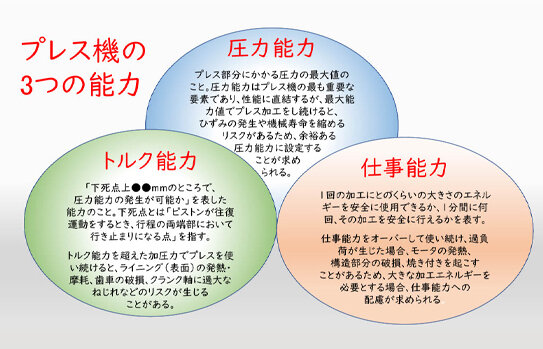 プレス機の能力は「圧力能力」「トルク能力」「仕事能力」の3つの要素で構成されていて、この3要素をもとに稼働までに入念かつ緻密な設計が求められます。大型プレス機ともなれば売価は数十億円になりますが、「でかい」機械設備を保有し、膨大な維持費を賄えることは協業他社への差別化につながるため、金属加工や板金を手がける企業で働く人にとって大型プレス機を保有することは、夢であり誇りでもあるのです。
