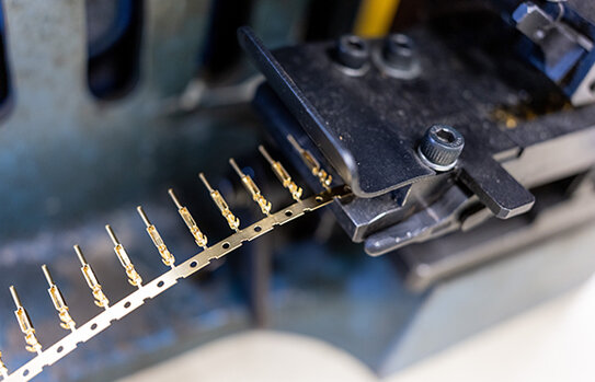 自動プレス機のひとつで、フィーダーでコイル状の材料を自動で送り、1回のプレスで完成品まで成形することが可能