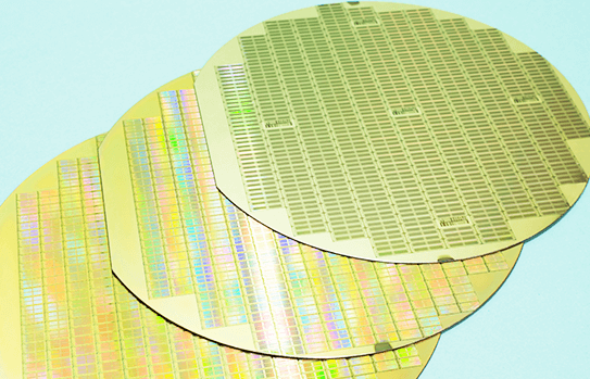 シリコンウェーハ表面上にトランジスタなど細かい電子回路を集積していく工程です。