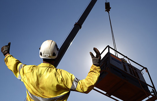 4.クレーンを持ち上げる合図をする