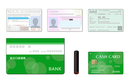 Ⓒ 通帳とキャッシュカード(口座を新規に開設する場合は銀行印も必要)