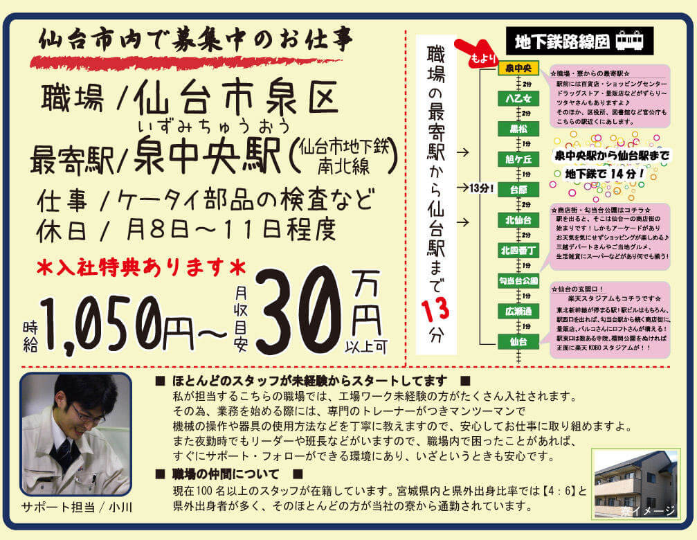 宮城県や仙台市の求人をお探しですか?工場系の求人は日総工産の「工場求人ナビ」で!