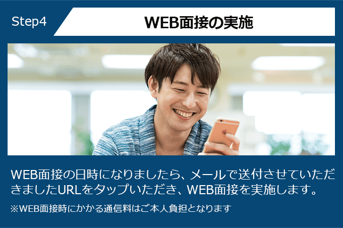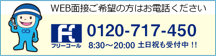 WEB面接ご希望の方には「電話」でご連絡をいただく流れとなっており、インターネット等での受付はしておりません。
