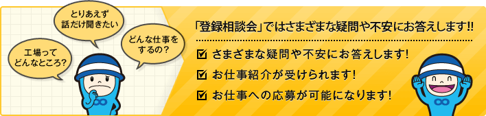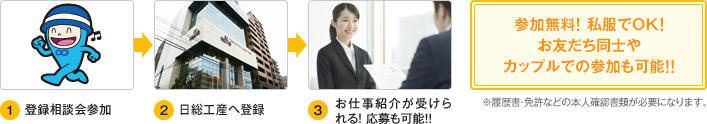 お仕事に応募したい方は、まず登録会への参加が必要です。