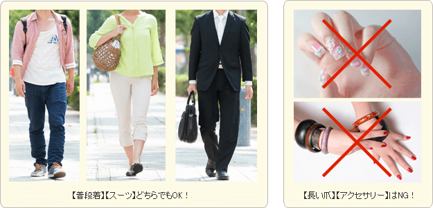【普段着】【スーツ】どちらでもOK! 【長い爪】【アクセサリー】はNG!