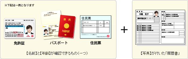 【名前】と【年齢】が確認できるもの(一つ) 【写真】が付いた「履歴書」